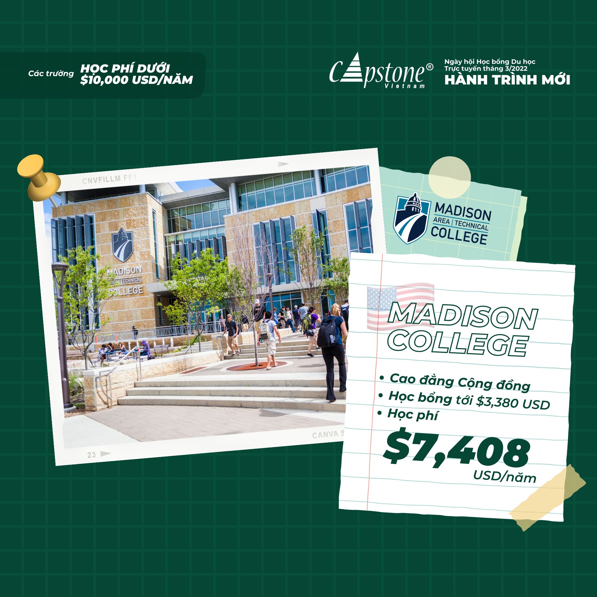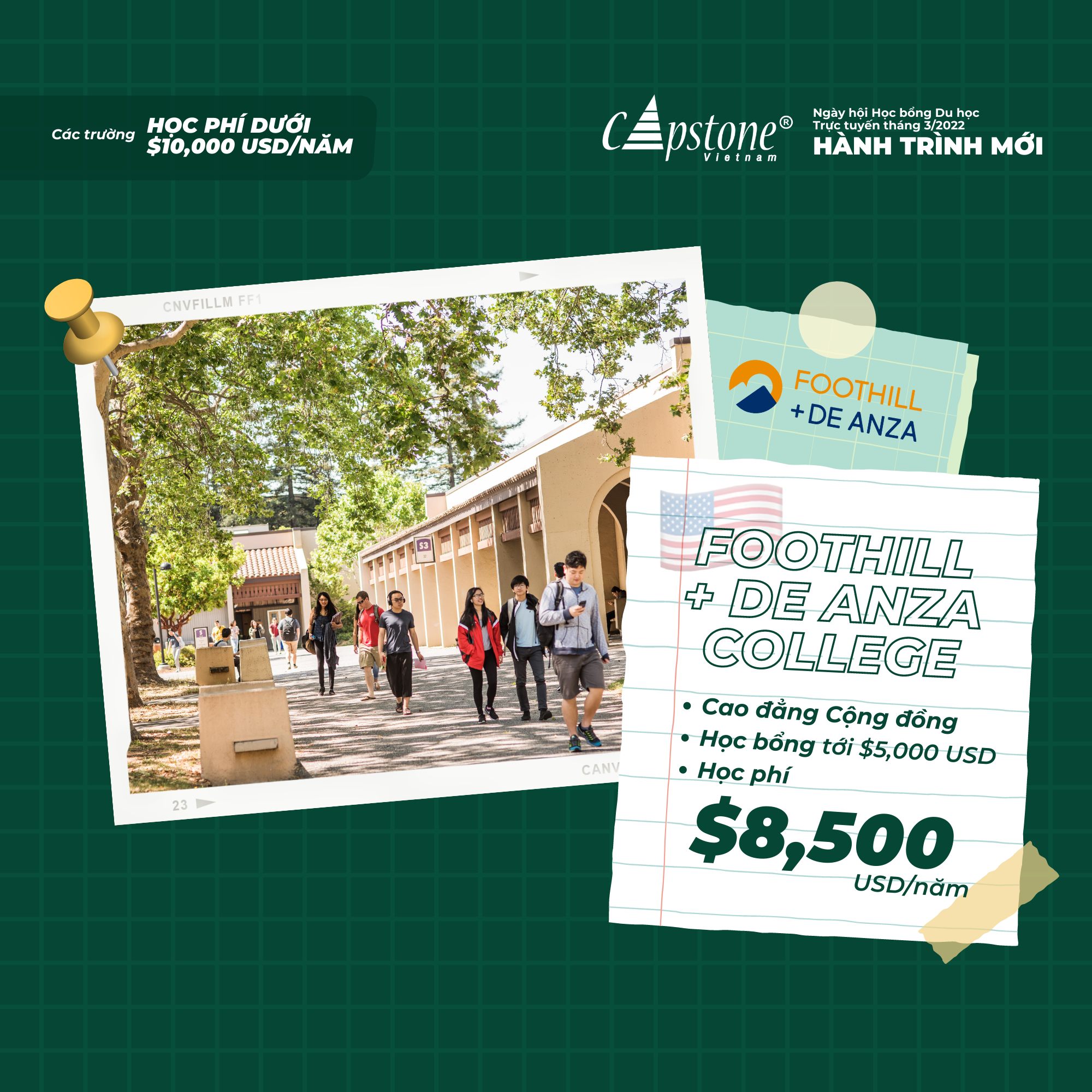 Hãy cùng 𝘾𝙖𝙥𝙨𝙩𝙤𝙣𝙚 𝙑𝙞𝙚𝙩𝙣𝙖𝙢 tham dự NGÀY HỘI HỌC BỔNG DU HỌC TRỰC TUYẾN THÁNG 3/2022 - “Hành Trình Mới”. Gặp trực tiếp đại diện trường thông qua nền tảng online, và tìm hiểu các cơ hội học bổng lên đến 100% cho mọi bậc học: từ phổ thông, cao đẳng tới đại học tại Mỹ, Anh, Canada, Ireland, Singapore,…; cùng chuỗi các hội thảo (webinar) với nhiều chủ đề bổ ích: