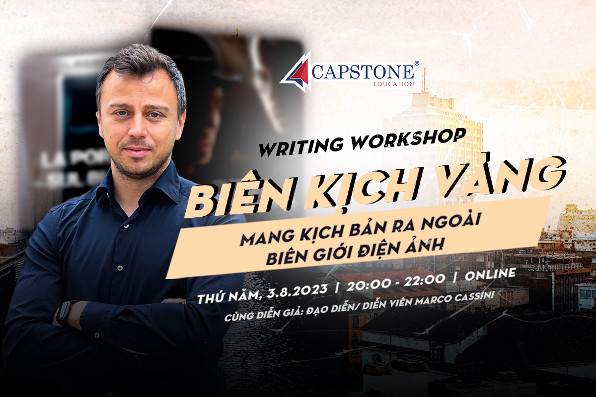 “Biên Kịch Vàng, Mang Kịch Bản Ra Ngoài Biên Giới Điện Ảnh” là workshop tiếp theo trong chuỗi writing workshop của Capstone Vietnam nhằm cung cấp các kiến thức, kĩ năng viết cho các bạn học sinh, sinh viên trong quá trình chuẩn bị du học.