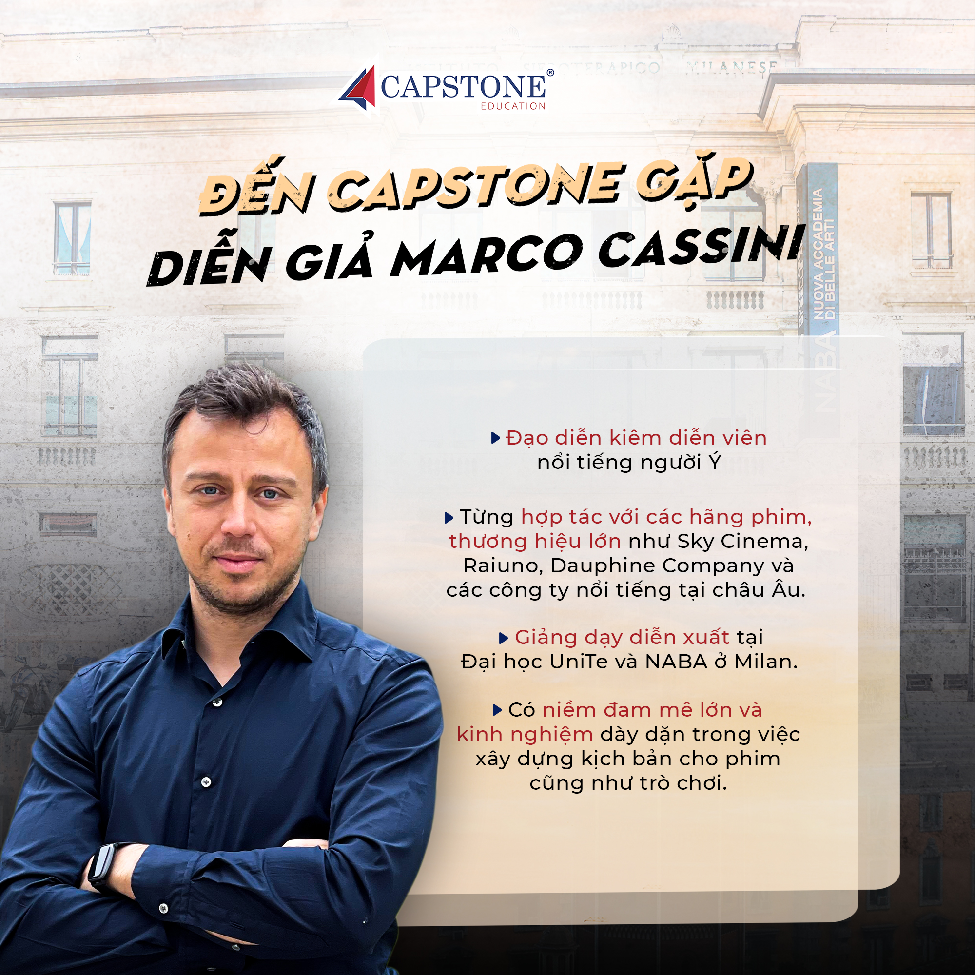 Để giúp các bạn hiểu rõ về viết kịch bản cũng như cách áp dụng ở thực tế, Capstone Vietnam đã cùng trường NABA mời đến một diễn giả là chuyên gia về các kỹ năng này - đạo diễn kiêm diễn viên nổi tiếng người Ý, thầy Marco Cassini.