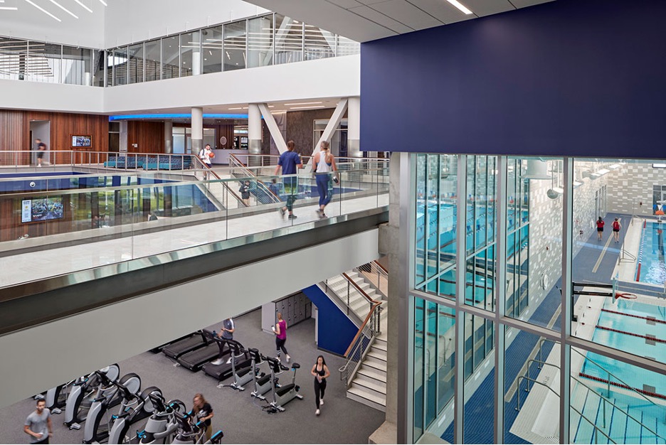 Trung tâm Giải trí Sinh viên (Student Recreation Center) được trang bị đầy đủ thiết bị cardio và hỗ trợ tim mạch, hồ bơi, đường chạy trong nhà, studio đạp xe, phòng học thể dục nhóm, trung tâm leo núi, sân bóng rổ và bóng vợt, v.v.