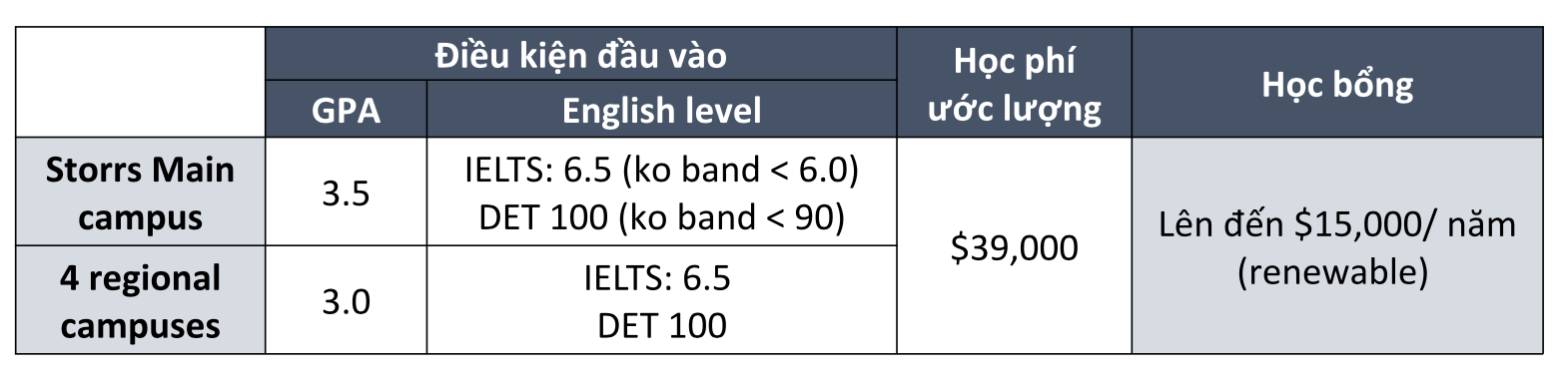 - UConn là 1 trong 18 trường duy nhất tại Mỹ nhận sinh viên quốc tế cho khối ngành Y.